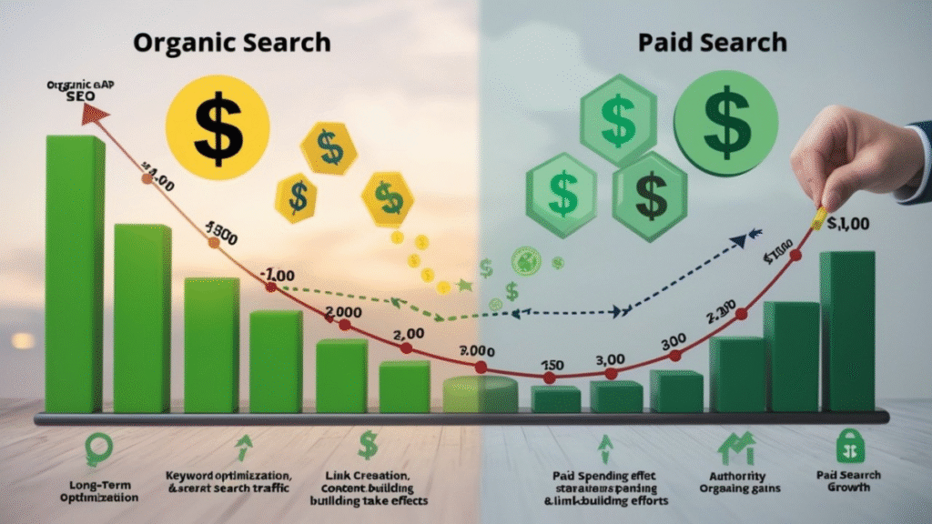 The beauty of organic versus paid search marketing through SEO is its compounding returns. Unlike paid advertising, where your visibility stops when you stop paying, SEO investments build equity over time. A well-optimized page can bring in traffic and leads for months or even years. This makes SEO a very cost-effective digital marketing strategy for long-term growth.